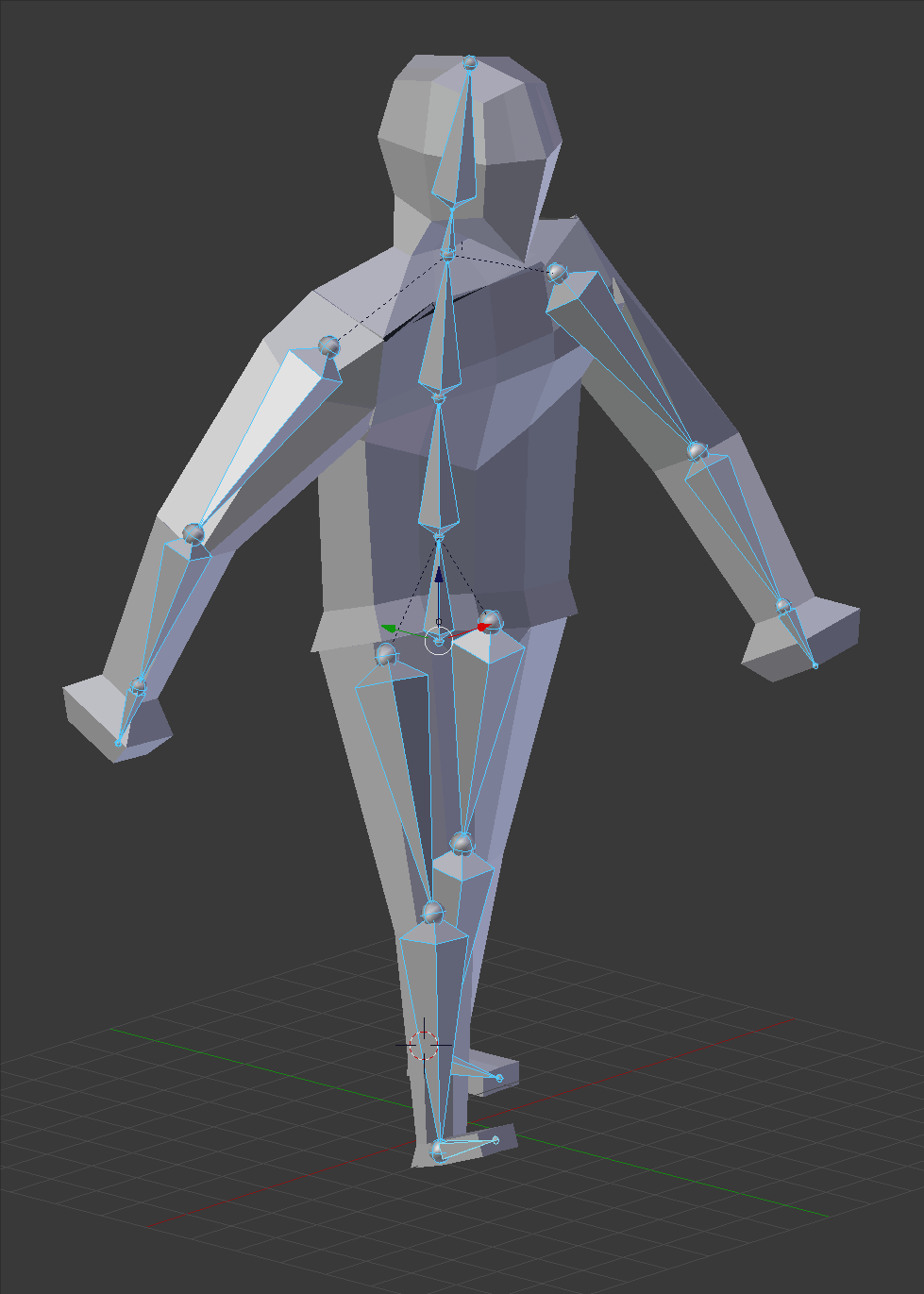 It is a simple 3D humanoid character that performs walking and waving animation.